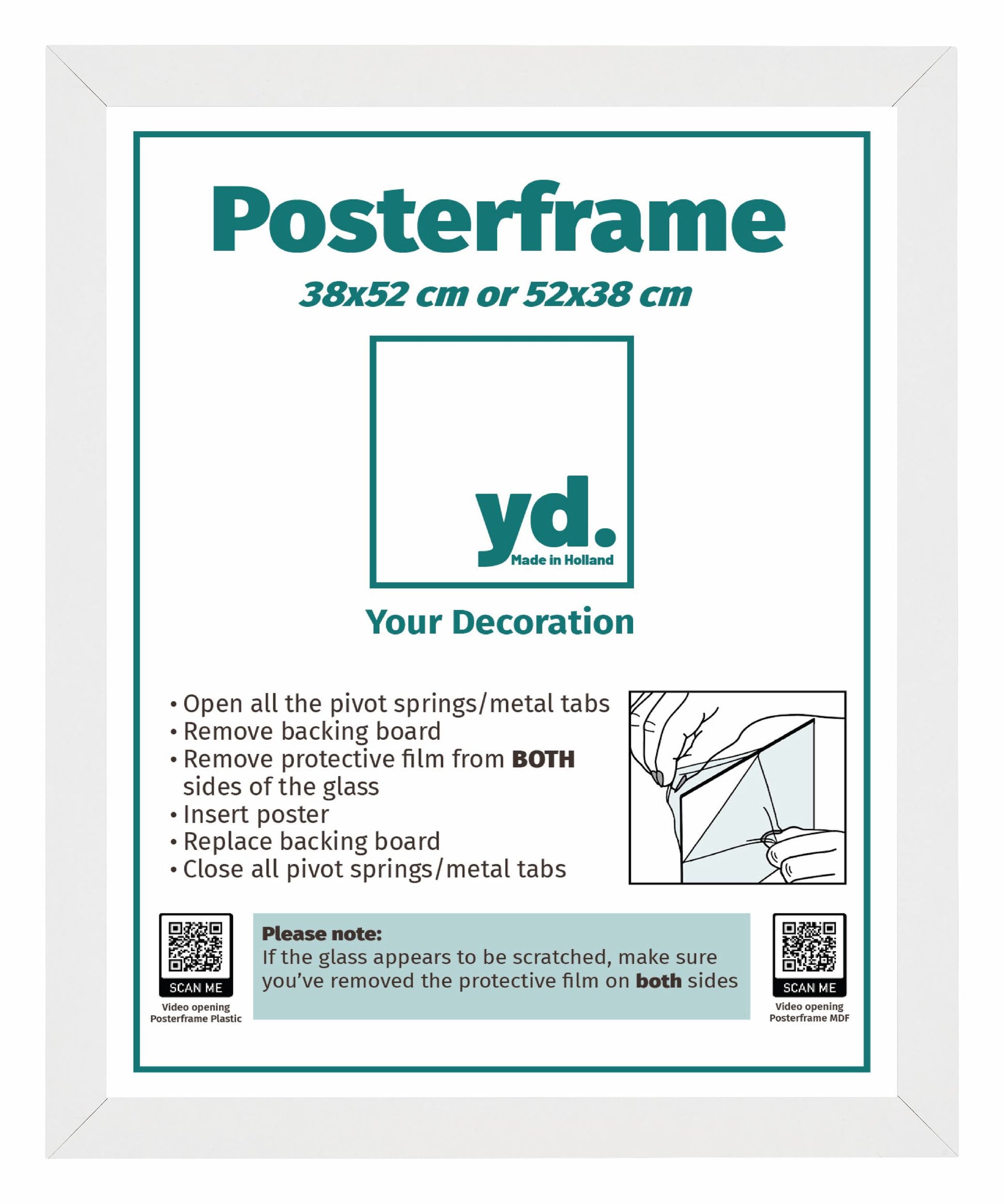Dieser Posterrahmen kann im Hoch- oder Querformat verwendet werden und eignet sich daher auch als Posterrahmen 52x38cm.