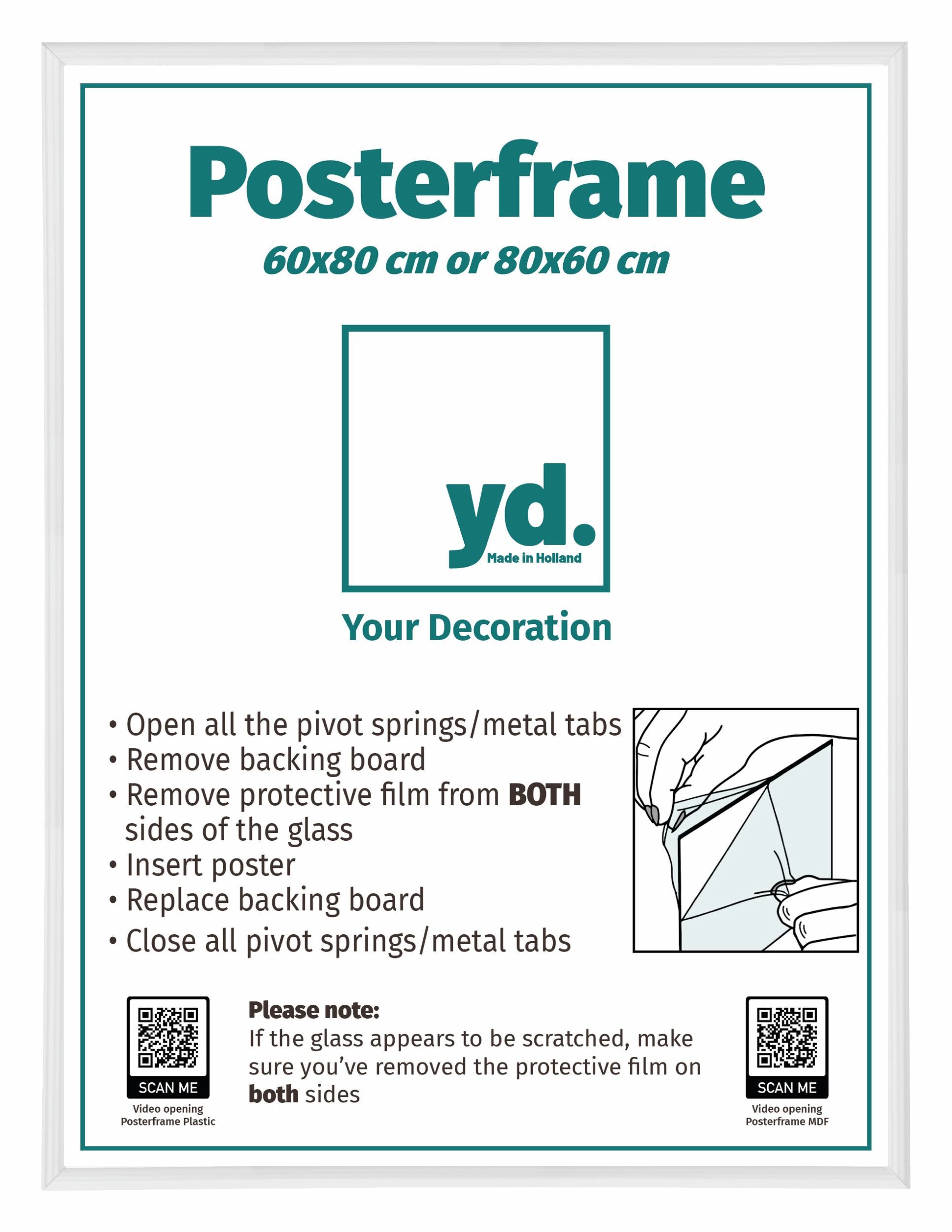 Dieser Posterrahmen kann im Hoch- oder Querformat verwendet werden und eignet sich daher auch als Posterrahmen 80x60cm.